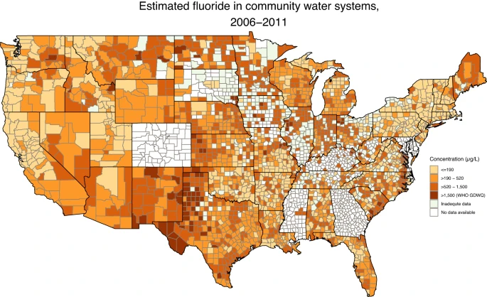 - stats (published in nature) about what water supplies are over the fluoride limit